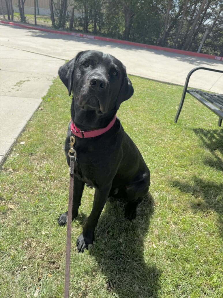 Ryla is a very sweet and lovable gal looking for a forever home. She is still young, so she’s full of energy at times and loves to play fetch, but also loves to relax around the house and cuddle. She has gotten along well with other dogs, children, and cats while in training, but she can get overly excited at times due to her young age. Ryla currently shows no sign of discomfort, but will require daily joint supplements and could require additional medications and surgery as her Hip Dysplasia progresses.